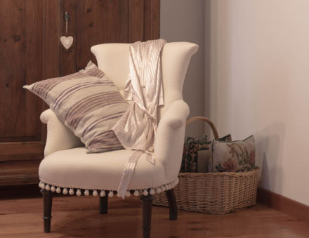 A desk and small lounge complete this intimate “retreat”, created to allow guests to fully savour the peace and quiet of Ville D’Arfanta.