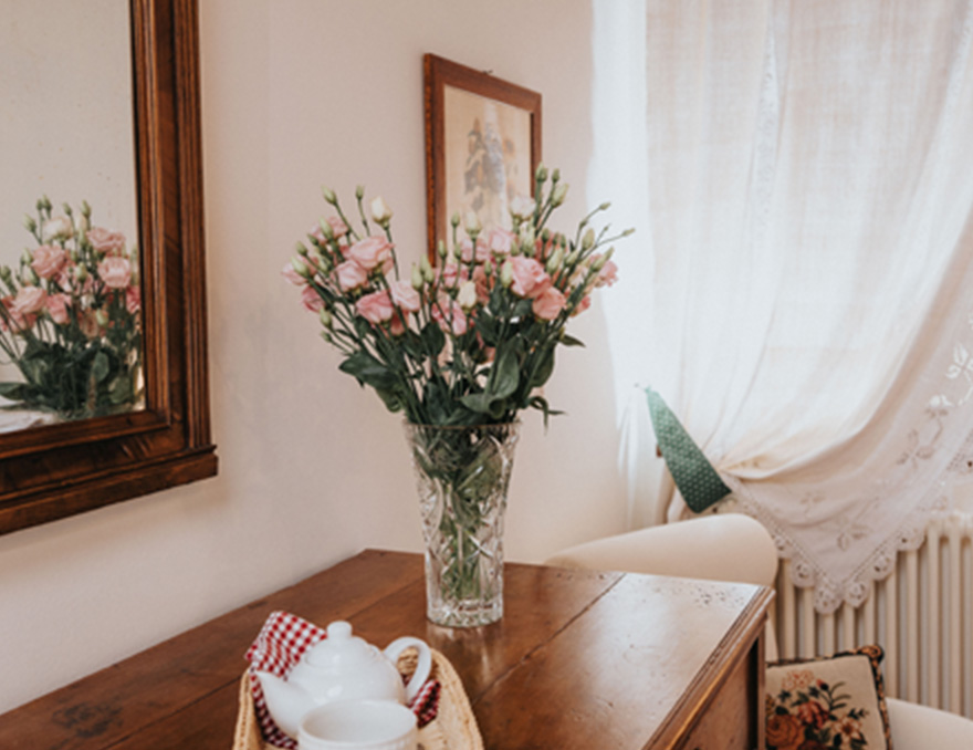 Single room overlooking the courtyard, with exposed beams, in a classic, romantic style, with private external bathroom.